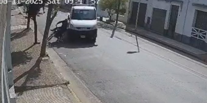 - El impactante accidente quedó registrado por las cámaras de seguridad sobre avenida Yrigoyen y Av. 25 de Mayo.